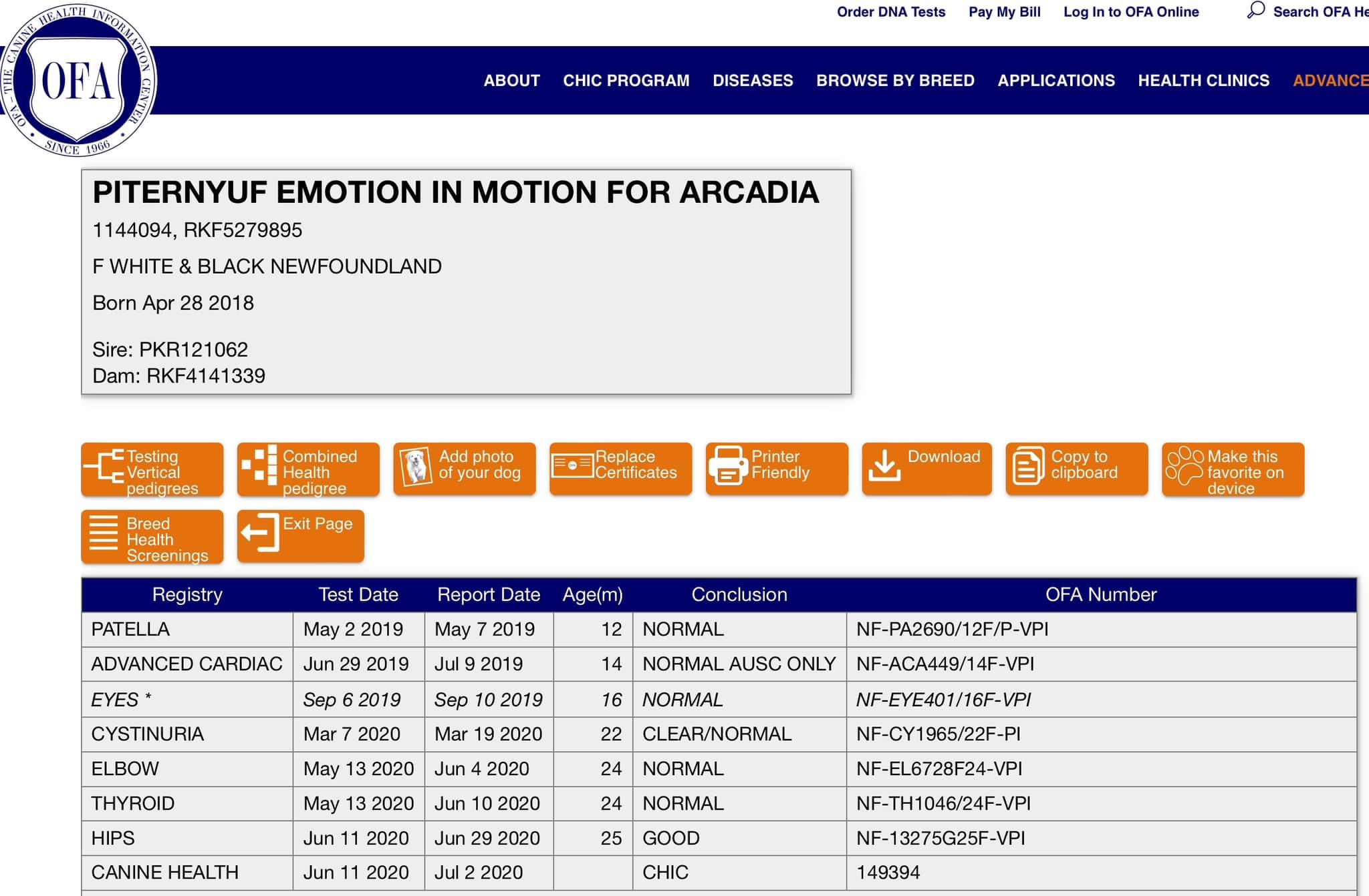 OFA yeux : Normal