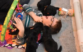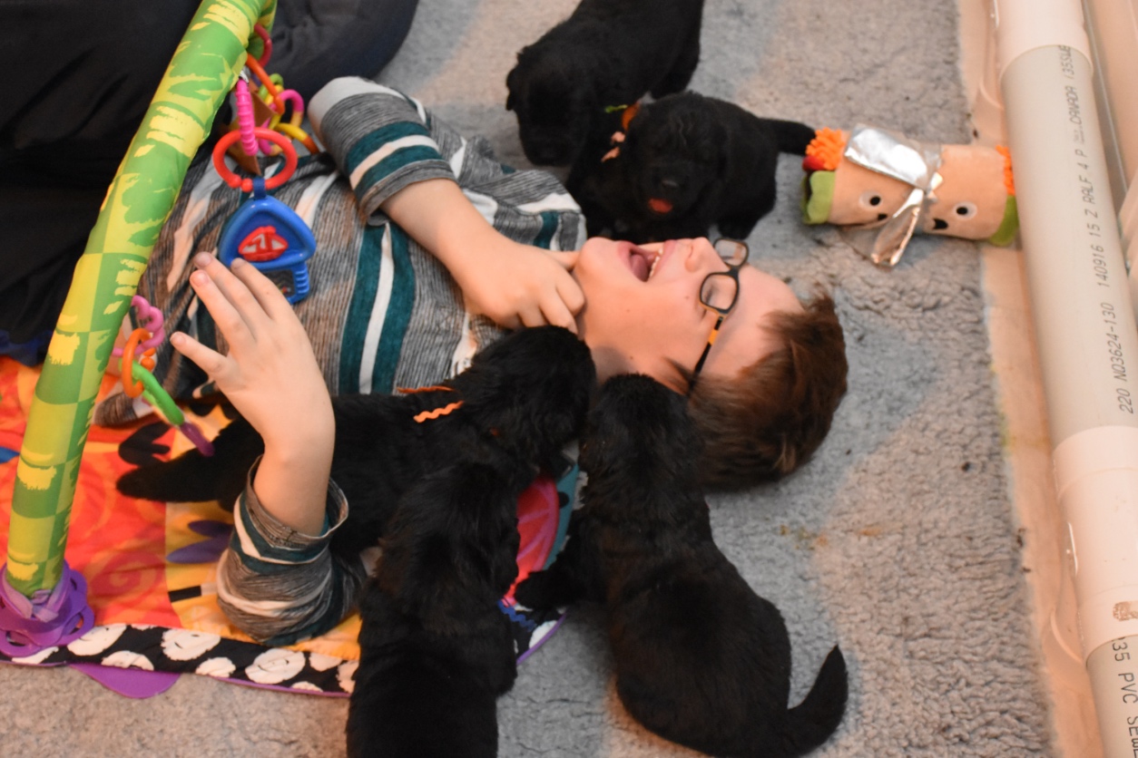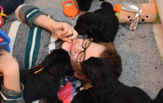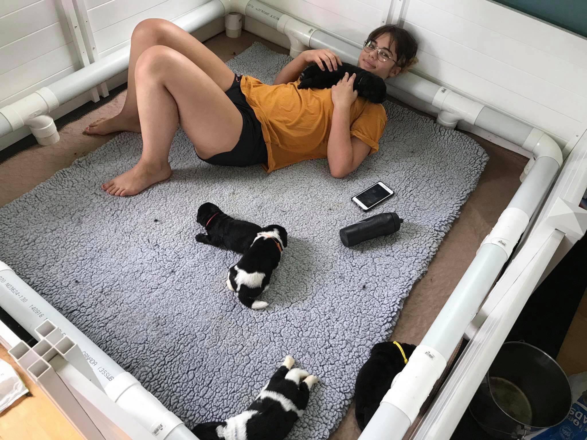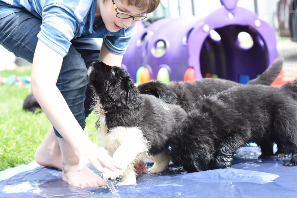 - Amour - apprendre aux chiots à rechercher la compagnie à la fois des chiens et des humaines comme étant un expérience positive ( câlins régulier avec les humains et la maman )