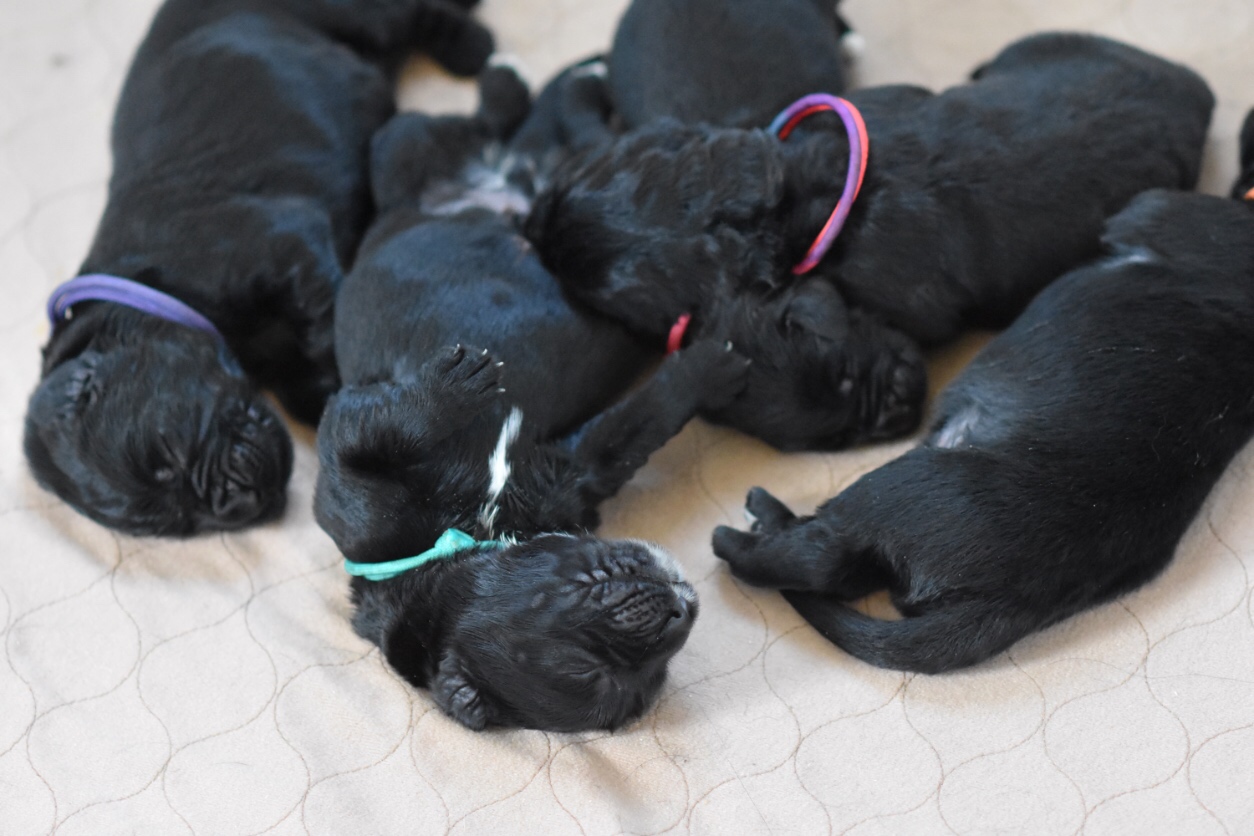Semaines 10 à 12: Les chiots sont introduits dans leur nouvelles familles